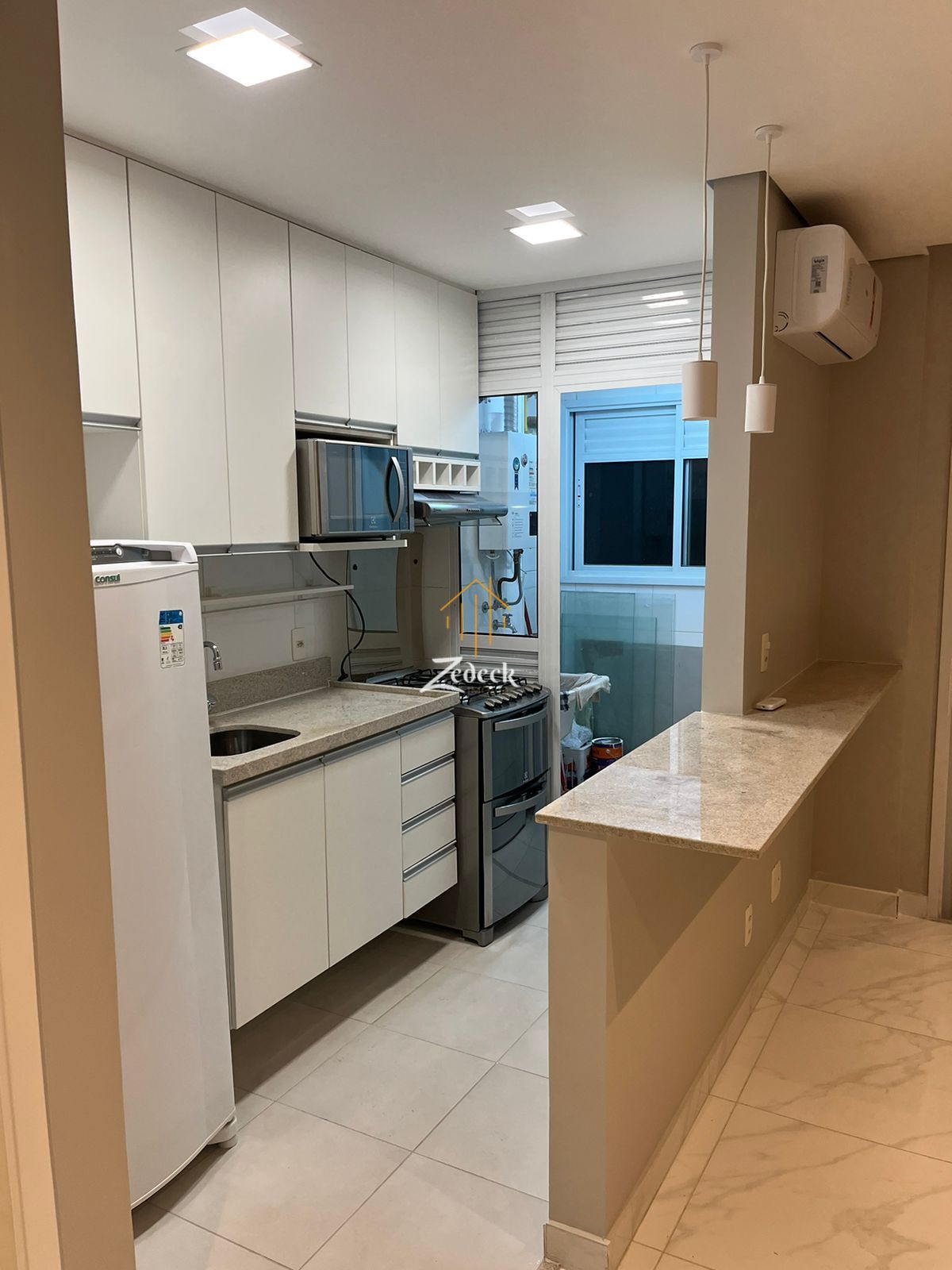 Apartamento com 54m2, andar alto, 1 quarto sendo 1 suíte, 1 banheiro, sala para 2 ambientes com cozinha integrada, ar condicionado e 1 vaga. Varanda com fechamento em vidro, nunca habitado, bem Iluminado. Todos os móveis e eletros vão ficar.